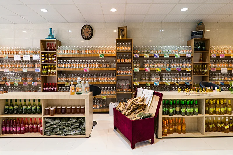Rosewater products, such as these inside the Shahre Golab Rosewater Store, are sought after by visitors to the town.